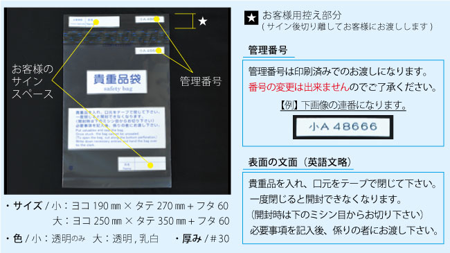 袋の上下には連番による管理で不正が疑われない環境を作ります。